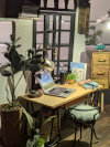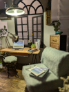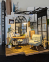 Originally built in April of 2020, this was a Rolife "Soho Time" kit that I decided to customize. The original box art can be seen here. I did plank flooring, stained some wood as opposed to covering it, painted the walls, painted the roof and windows black, did less artwork on the walls, added some custom decor, and ommitted some kit items.